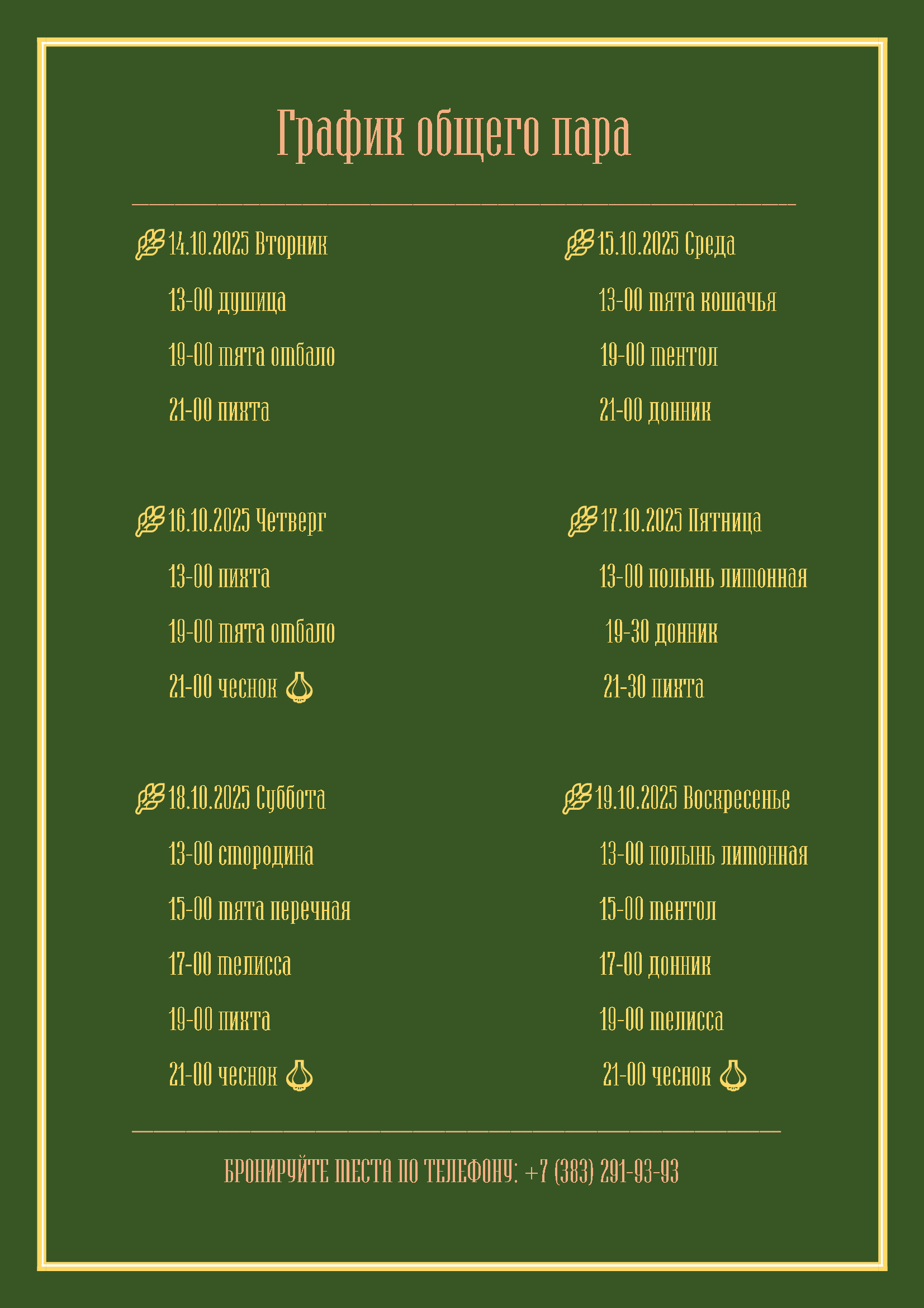 График общего пара c 14 октября по 19 октября 2025 г.