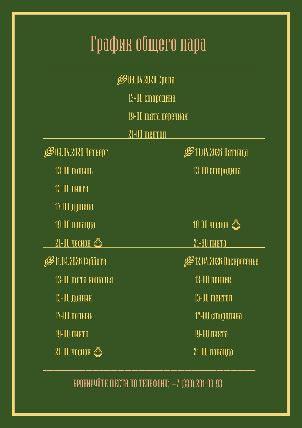 График общего пара с 08 апреля по 12 апреля 2026 г.