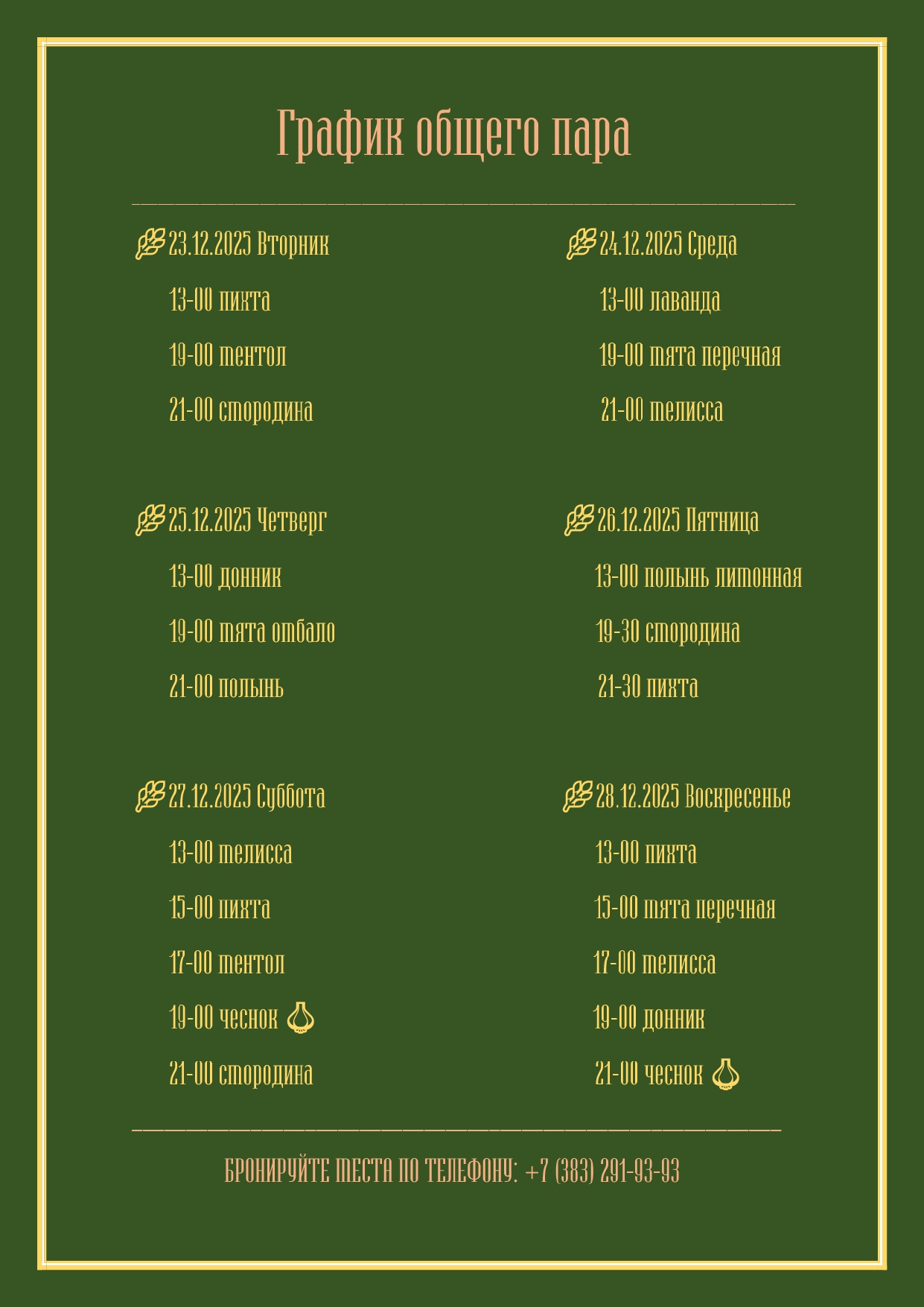 График общего пара c 23 декабря по 28 декабря 2025 г.