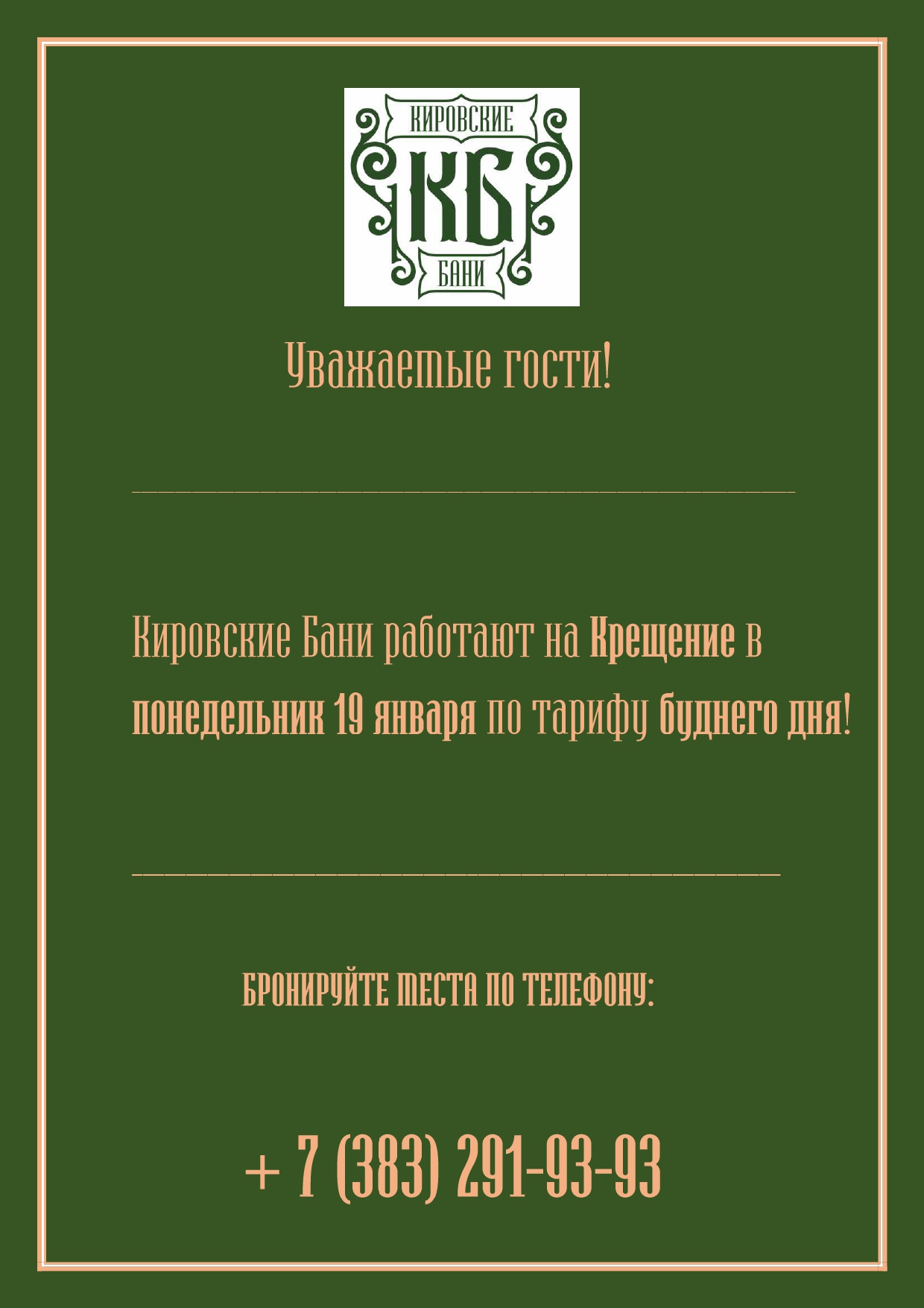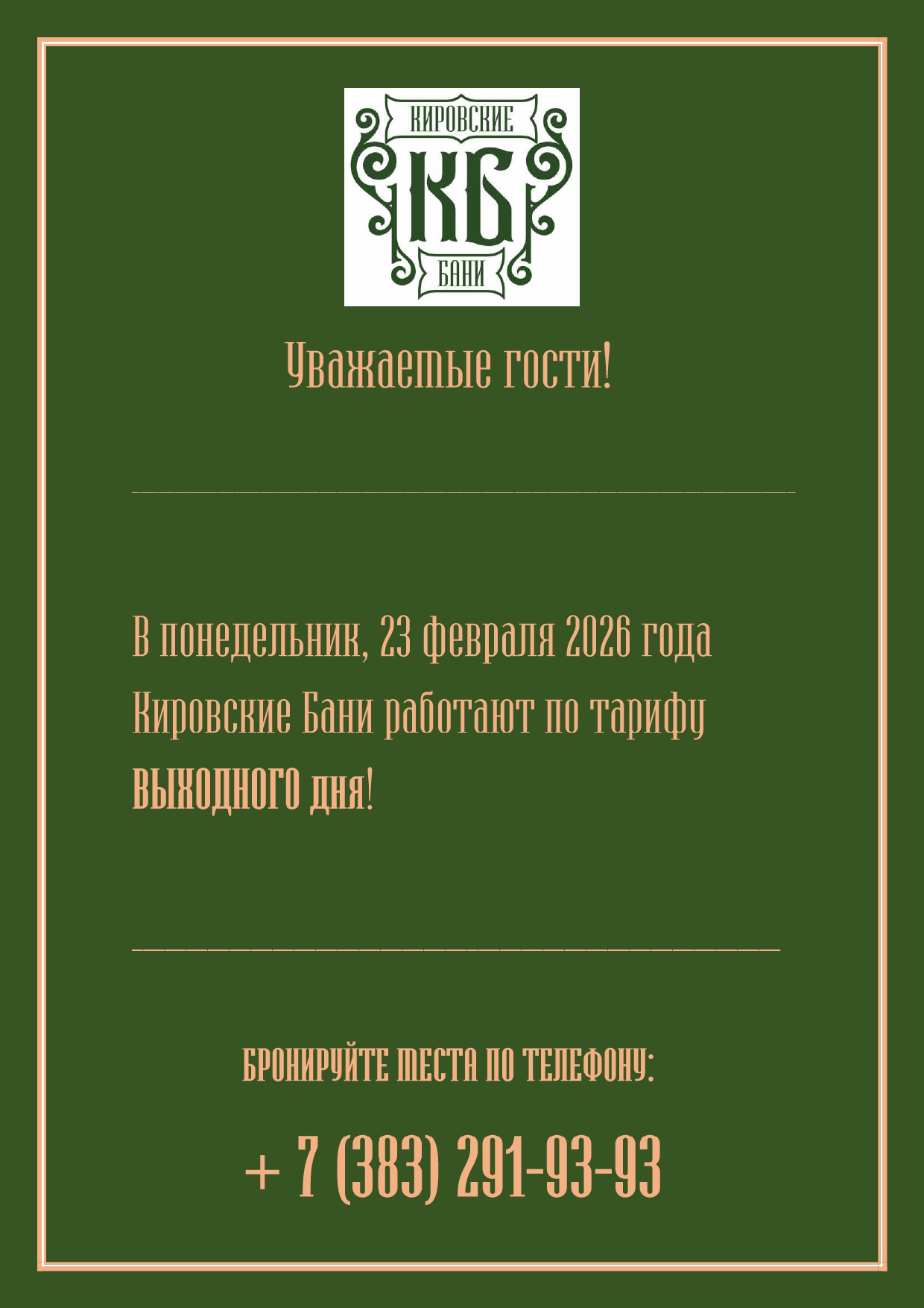 Внимание! Кировские Бани 3 и 4 ноября 2025 года работают по тарифу выходного дня!