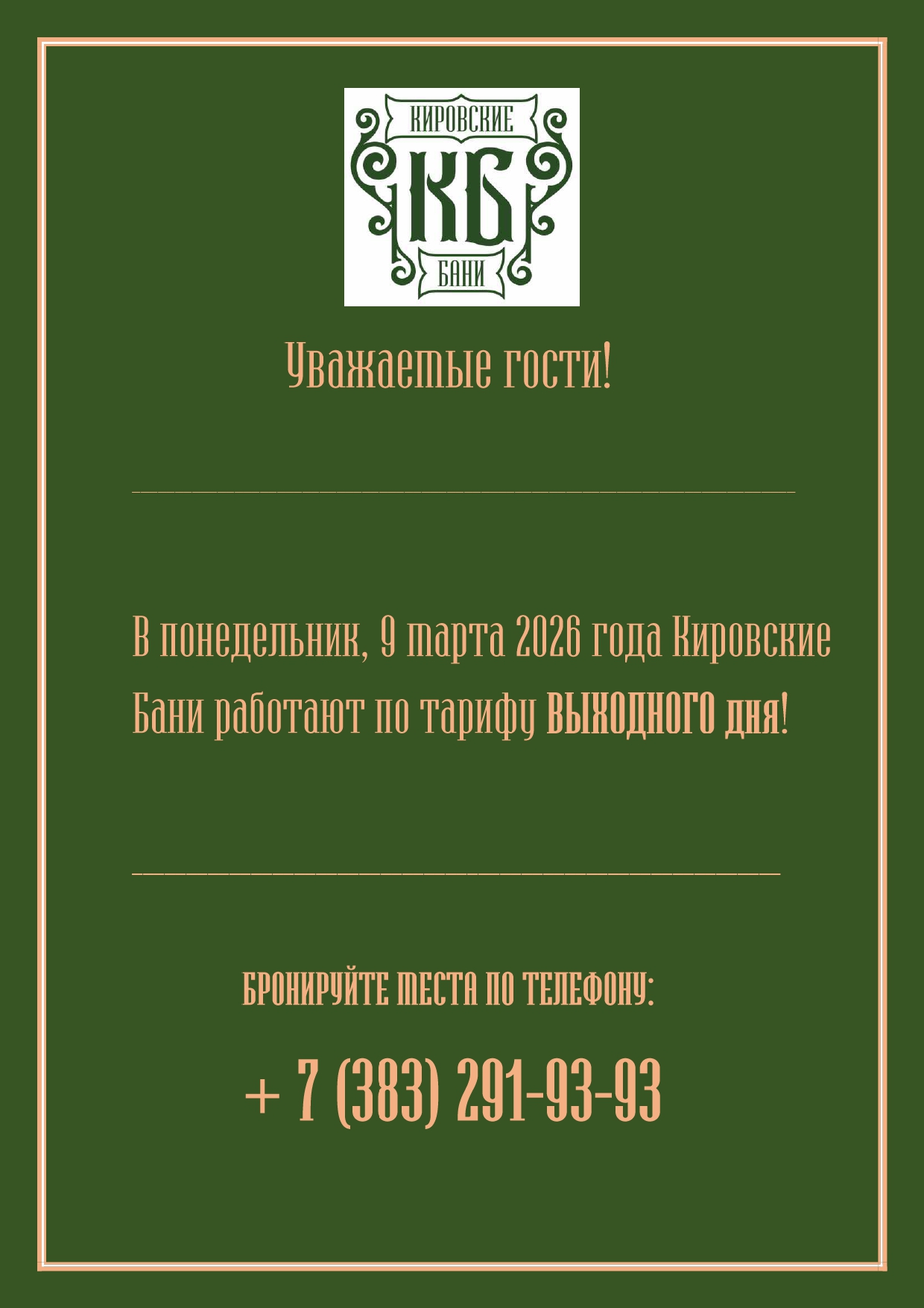 Кировские Бани работают 9 марта!